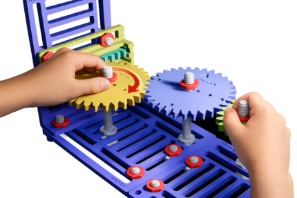Le pack Engrenages coniques MK153 MécaKit permet de compléter le Kit de base et d’explorer des mécanismes utilisant des engrenages coniques pour transmettre le mouvement entre axes perpendiculaires.